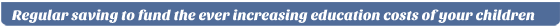 To be able to cope with ever-increasing school and university fees, committing to a long-term savings scheme is essential. Planning ahead and making sure that the necessary funds are available when required leads to financial freedom for yourself while securing your child's education.